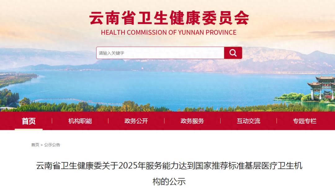 11月12日,云南省卫生健康委员会发布关于2025年服务能力达到国家推荐标准基层医疗卫生机构的公示,132家乡镇卫生院(社区卫生服务中心)达到国家推荐标准,其中昆明有11家。另有3家社区卫生服务中心达到社区医院建设标准。