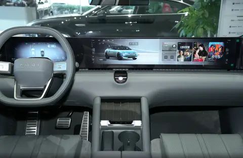 车机:59 英寸贯穿屏 + 8295 芯片,流畅度堪比手机59 英寸贯穿式超清广域屏幕是座舱的 “视觉核心”,由 12.3 英寸仪表 + 27 英寸中控 + 19.7 英寸副驾娱乐屏组成,分辨率达到 4K,阳光直射时也能看清楚。全系标配的高通骁龙 8295 芯片,算力足够支撑多任务运行 —— 同时开导航、音乐、视频通话,切换界面时没有一丝卡顿,滑动地图也很跟手,比之前试驾的某车型 “车机卡顿” 的体验好太多。