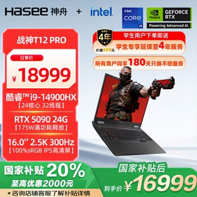 如果是追求极致的性能!那就首选神舟战神 T12 Pro,搭载英特尔 i9-14900HX 处理器,24 核心 32 线程的强悍规格,搭配RTX 5090显卡,无论是3D建模还是8K视频渲染,都能快速响应无压力。175W满功耗释放,4K分辨率下满画质运行各类3A游戏,画面丝滑流畅;面对专业影视后期等高生产力需求,高效处理能力更是不在话下。