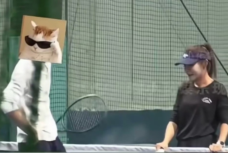 秋日午后,网球场上跃动着两个默契的身影。邓家佳梳着高马尾,身着网球短裙,少女感十足,与一位身材高大的运动型男子有说有笑地打球。球来球往之间,两人互动融洽,显得亲密无间。