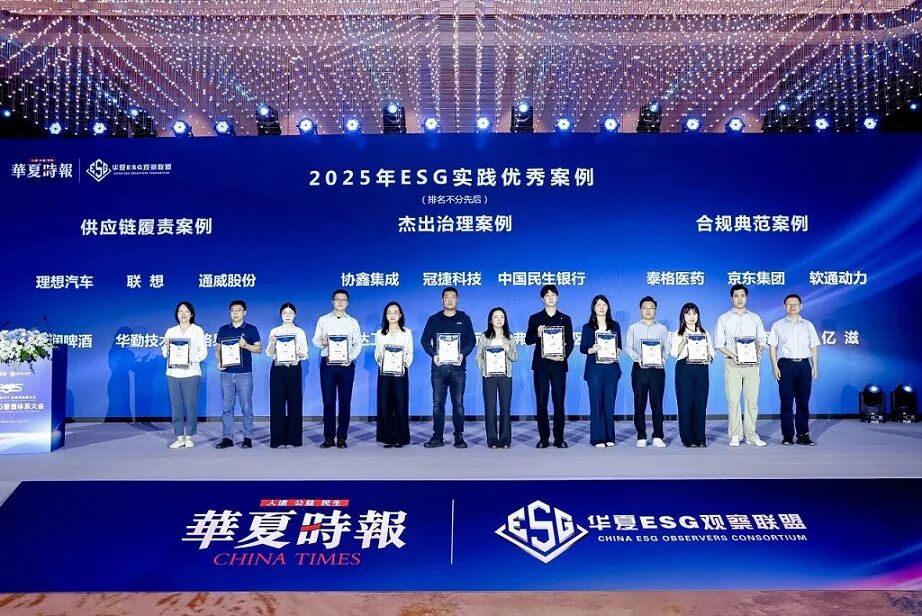 近日,在《华夏时报》与华夏ESG观察联盟联合举办的2025年ESG实践优秀案例评选中,通威股份凭借在供应链履责方面的系统实践与显著成效,成功摘得“供应链履责案例”和“十佳案例”两项荣誉。