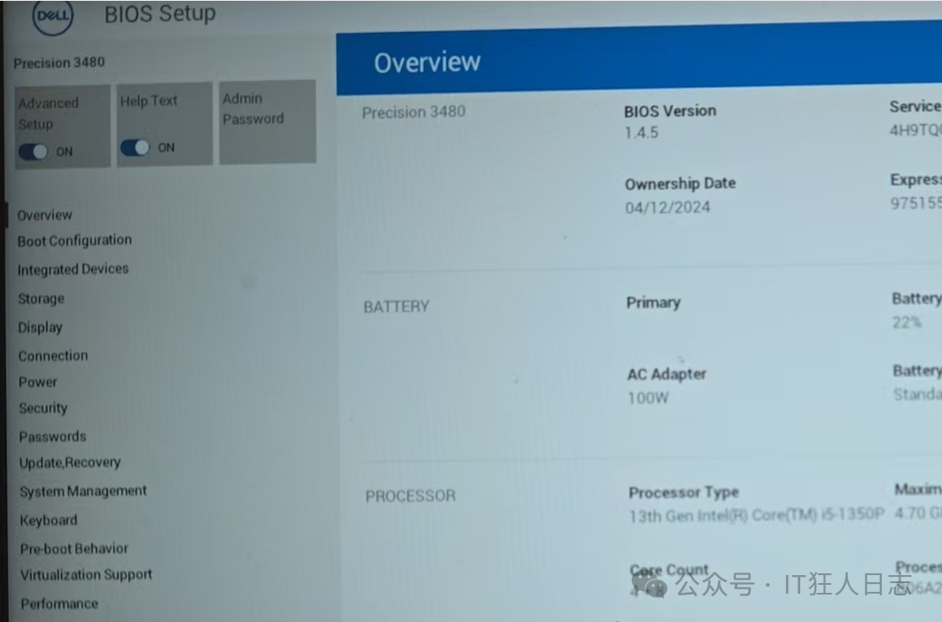 重启时按F2(客户用的是戴尔笔记本电脑,其他电脑可能有所不同),进入BIOS设置界面