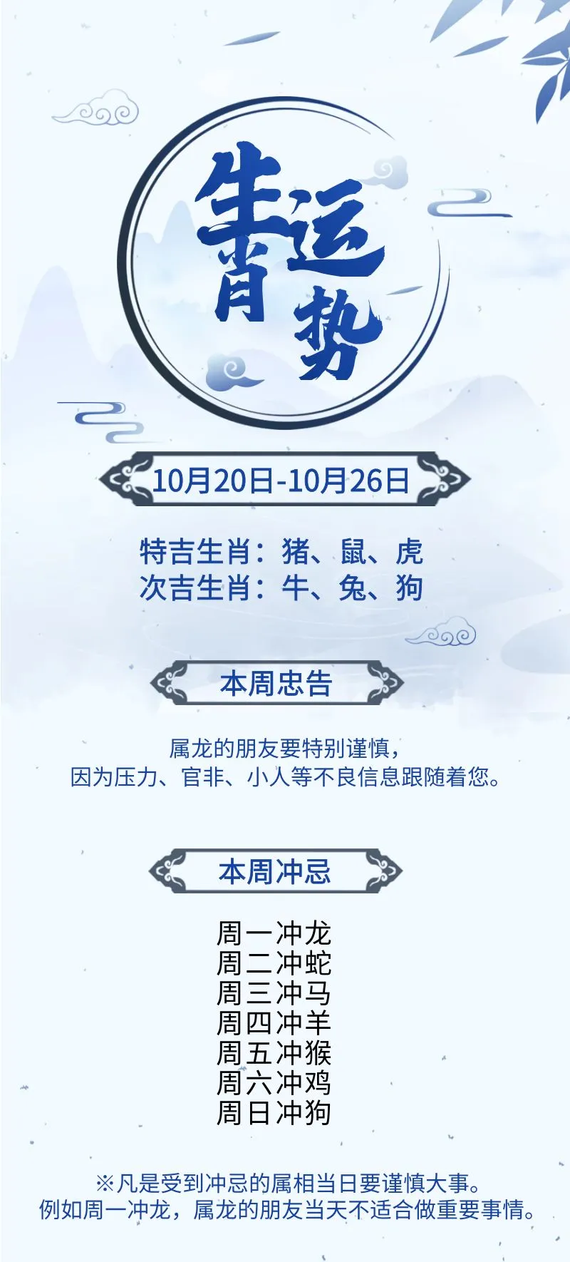 整体:安稳平顺的一周。周五“三合”,周六“六合”,周日“犯冲”。