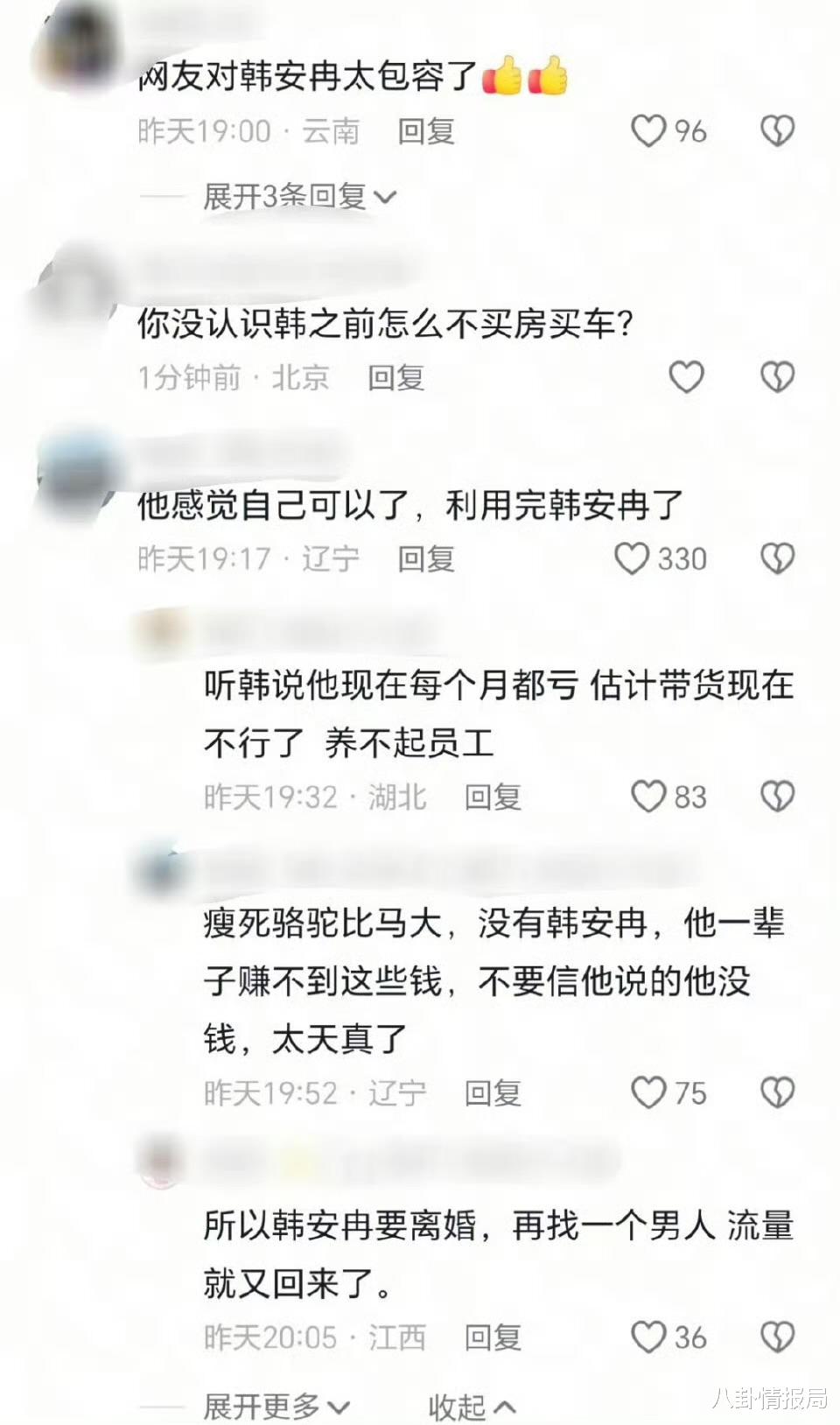 网友们纷纷调侃:“韩安冉的每一段婚姻,都像是在玩真人版《狼人杀》,每任老公都觉得自己是预言家,结果最后发现——狼人竟是我自己!”“别人结婚是‘我愿意’,她是‘我又要离婚了’。”