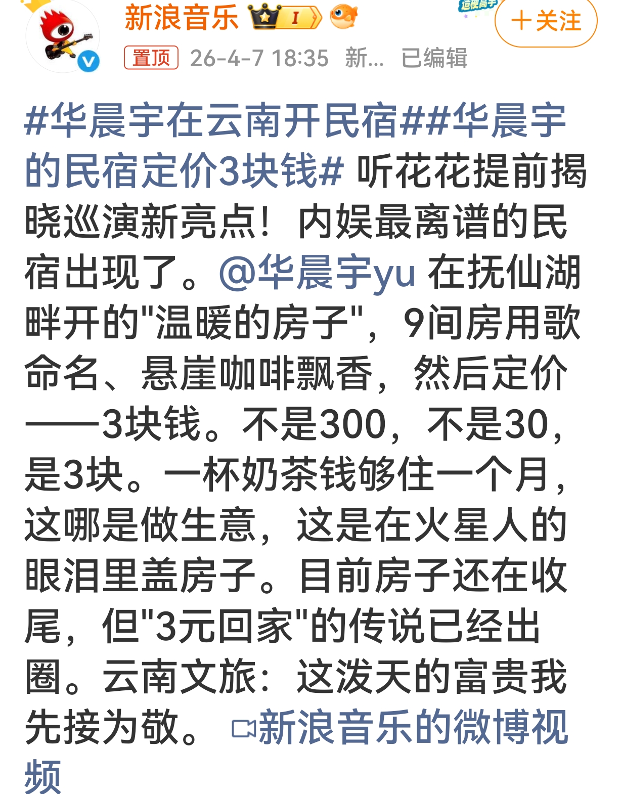 #华晨宇在云南开民宿# #华晨宇的民宿定价3块钱#