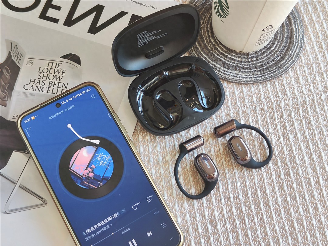 取出耳机,第一感觉便是它的轻盈。整机仅重 7g 的设计,拿在手中几乎感觉不到重量。耳机的外观设计极具科技感与美感,线条流畅自然,仿佛是从未来穿越而来的产物。31° 仿生悬浮倾斜的造型,既符合人体工学原理,又增添了一份独特的时尚感。航空级超弹记忆钛合金的框架,在灯光下闪烁着金属的光泽,彰显着其坚固与耐用。医用级高纯度生物硅胶材质的耳挂部分,质地柔软细腻,触感温润,让人忍不住想要立刻佩戴上它。