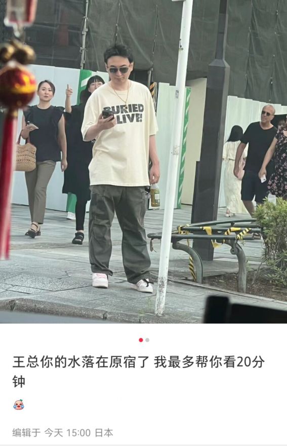 原来王思聪也在吃自己的瓜!6月12日,有网友在日本街头偶遇王思聪,对方表示,王总,你的水落在原宿了,我最多帮你看20分钟,这条动态引发了很多人的讨论。
