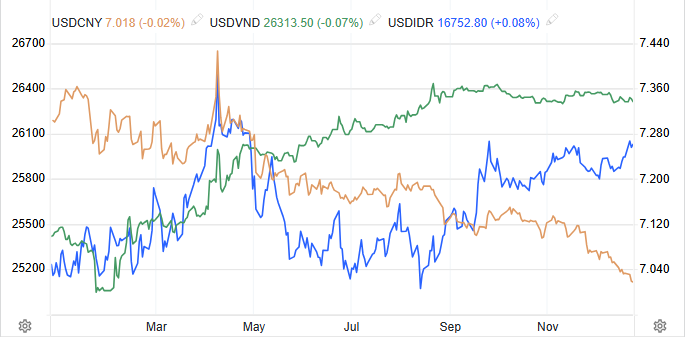 不过,作为一个集成和再组装加工的制造业国家,一旦全球经济放缓削弱美、中等主要贸易伙伴需求,而印尼、印度等国又加强争夺制造业转移红利的话,这种区域竞争的升温很可能影响其利润的持续,所以我们看到,越南经济形势不错,但其货币和印尼一样,并没有像泰株、马币那样走升值路线,而是维持平稳相对弱势的走势,以维持制造业利润!