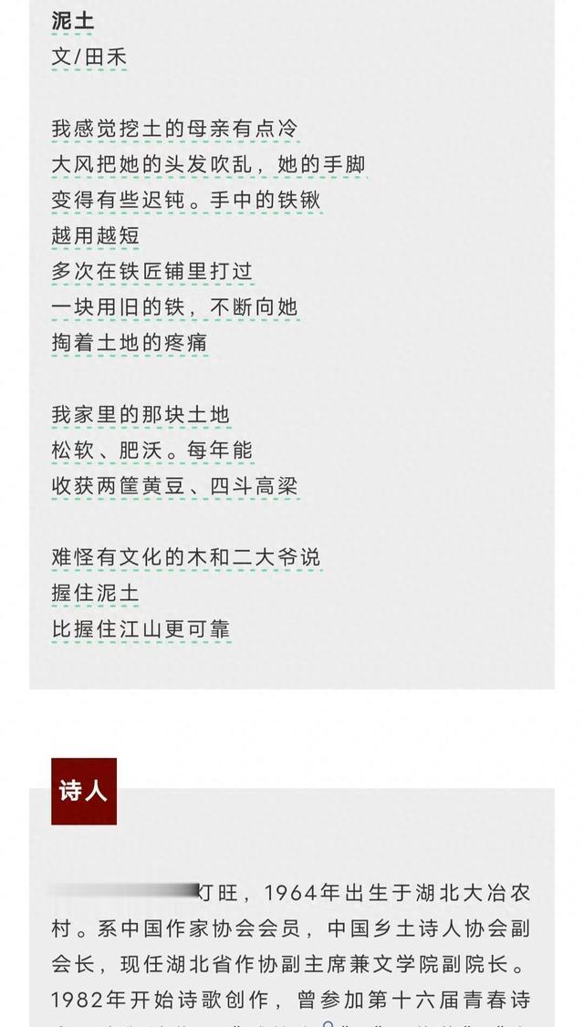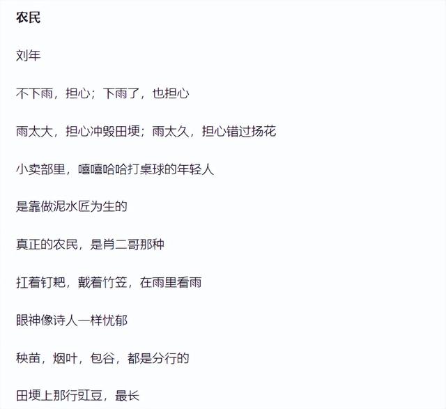 截图里有诗,一首是大诗人刘年写的《农民》——多么亲热的标题!一首是大诗人田禾写的《泥土》——多么可爱的标题!
