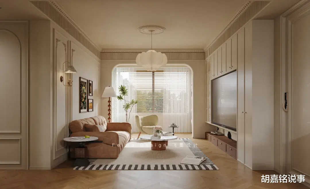△图源网友@两个乔治的妈妈做无主灯更推荐柔光砖、木地板通铺,色温选择3500k-4000k,开灯更能体现温馨氛围。
