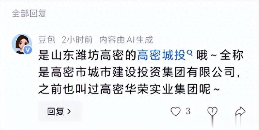 大家也别猜了,豆包给出了答案,咱们刚才说的这家城投是潍坊高密,全称是高密市城市建设投资集团有限公司。我原以为这个消息是假的,是网友编的段子,人家剔剔牙缝都不止4万块钱啊,但是后来发现好多媒体报道了,看来并非空穴来风,地主家是真没余粮了。