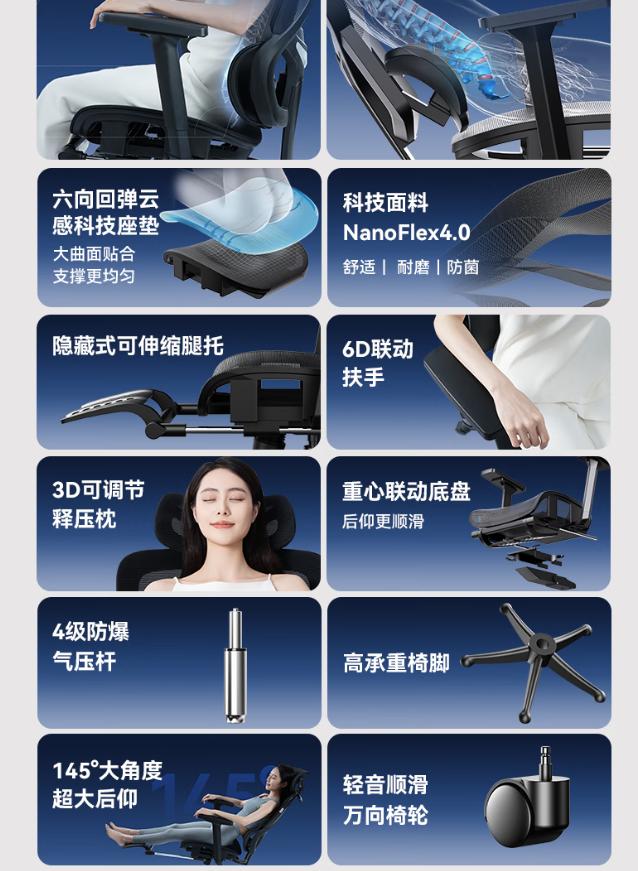 传统椅子在后仰时,腰部常出现“断点式”悬空,而Fit2的SCS系统通过弹性限位缓冲技术,在坐姿切换时自动调节支撑力度。当我从正坐转为后仰时,腰桥会柔性下压2-3cm,避免突然失压对腰椎的冲击。这种设计让午休时的145°后仰变得无比顺滑,配合3D可调释压枕,甚至能让人真正入睡——这是我第一次在办公椅上体验到“睡在云端”的感觉。