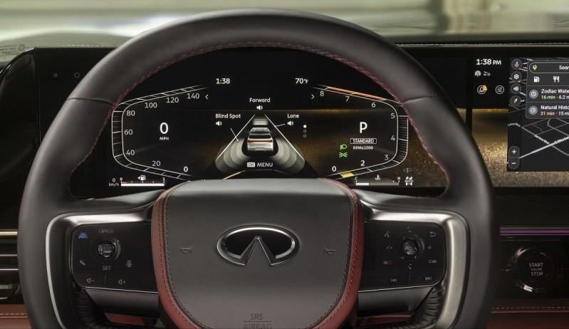 走进车内,全新一代美规版英菲尼迪QX80内饰整体延续了典型的日系豪华风格,座椅和方向盘均采用皮革材质包覆,并且采用双色车身缝线进行点缀,营造出不错的豪华感。与此同时,新车第一排和第二排还搭载按摩座椅,可以通过前方中控屏进行操控,同时第三排座椅还拥有座椅加热功能,并且搭载Klipsch Reference Premiere音响系统,拥并且配置24个扬声器,进一步提升车内驾乘的舒适性。