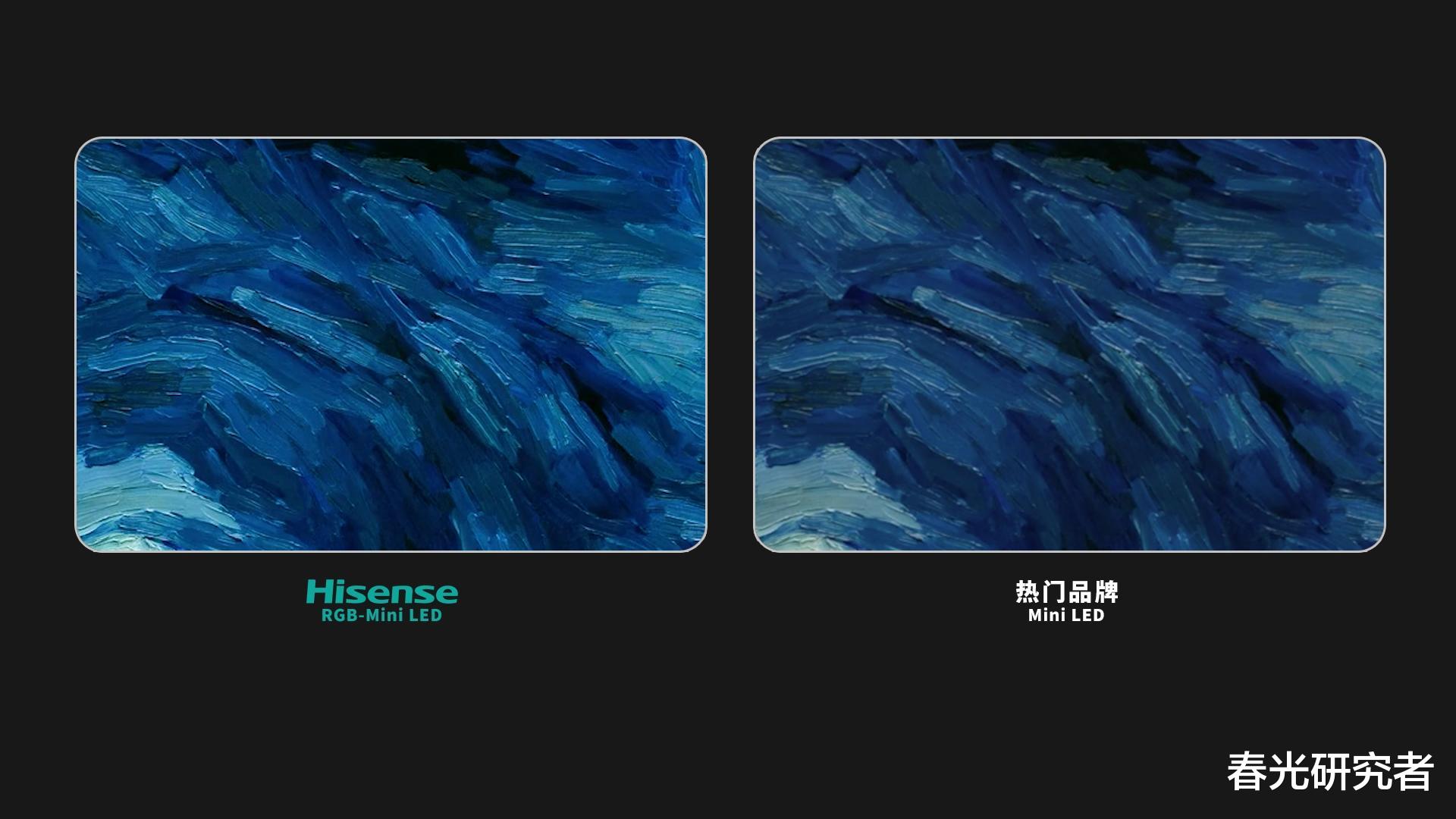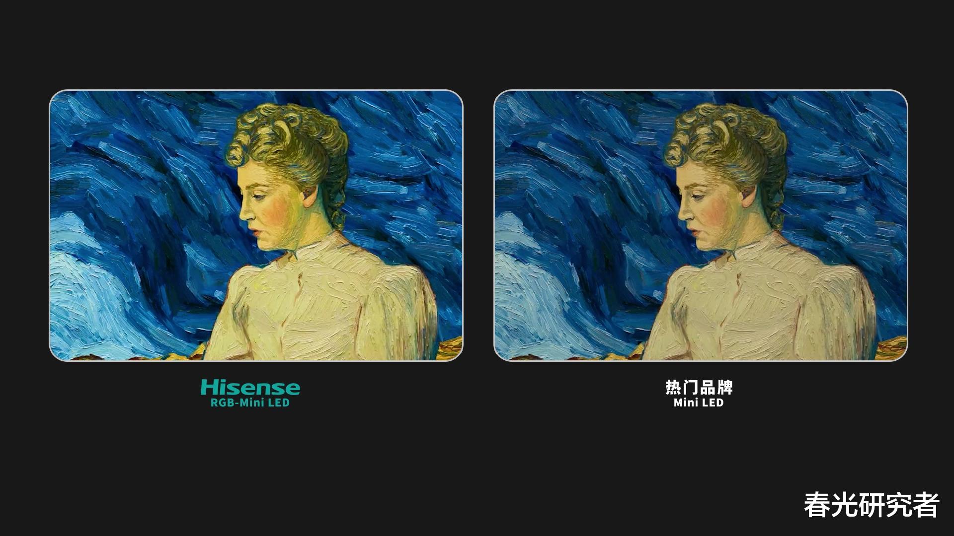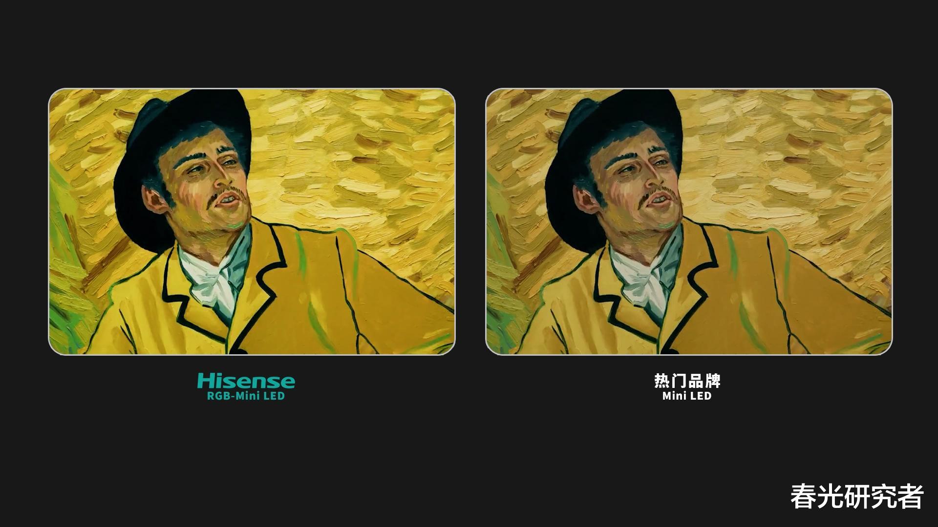 RGB-Mini LED对比传统的Mini LED来说,各个维度全覆盖碾压,即使是对比OLED,RGB-Mini LED的色彩表现也是遥遥领先。