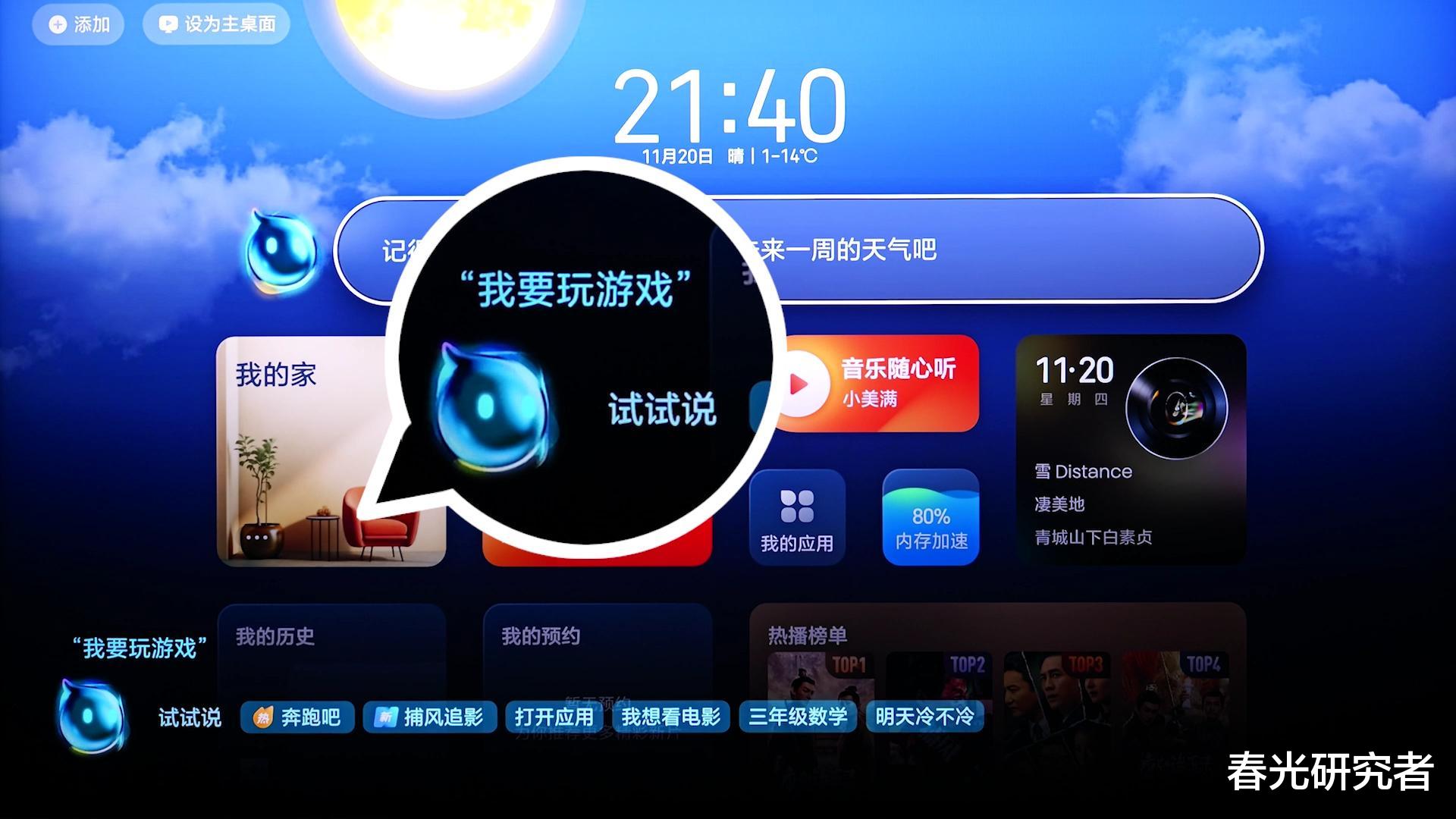 游戏体验对于广大游戏爱好者来说,E8S Pro除了上面说的画质升级之外,它还做了很多针对性的适配,比如说语音启动,只要对它说“海信小聚,我要玩游戏”,电视会自动检测接入的信号,然后进入到PS游戏画面。