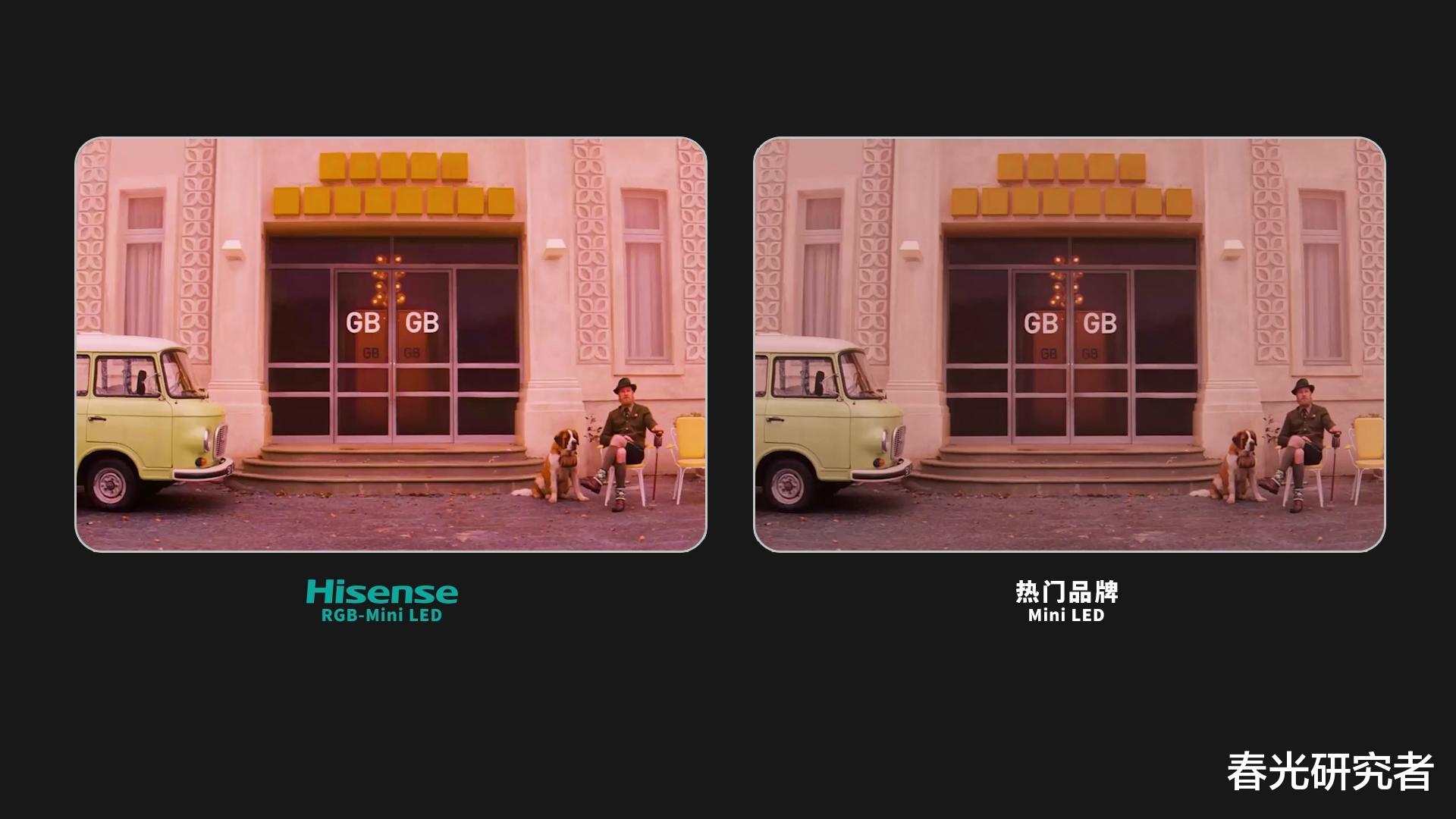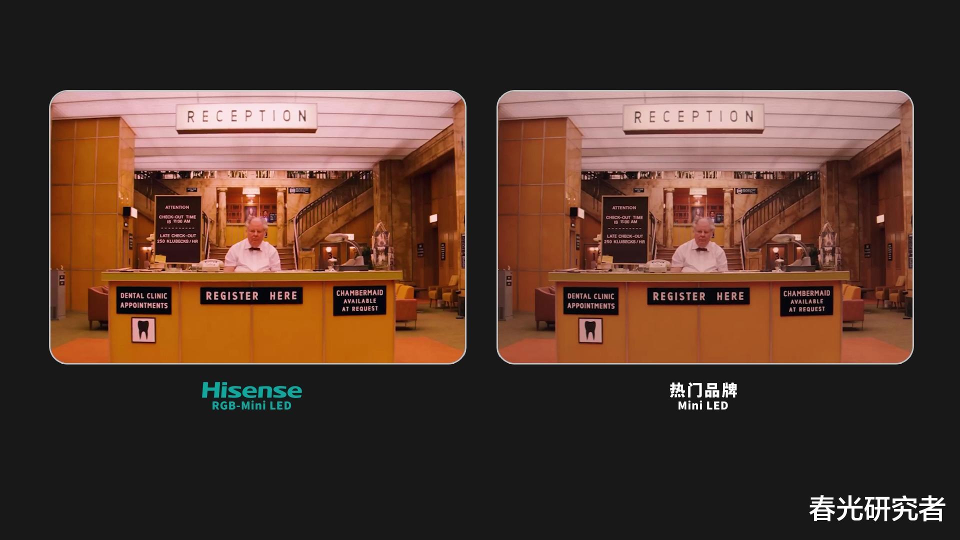 因为只展示海信E8S Pro的画质,大家可能看起来不直观,所以我们又增加了一台很热销的Mini LED电视,来作为参照。