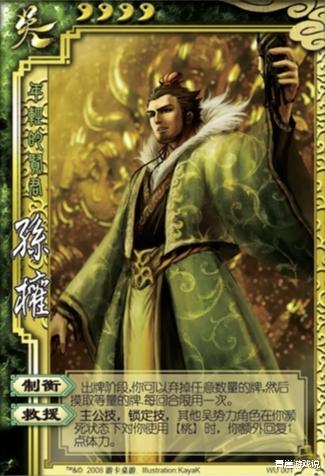 孙权【制衡】能将不重要的牌换走,对卡牌的利用率极强。三国杀存在的概念神,则是孙权发动【制衡】,手里全部牌变成拆、顺、无中这些高质量牌。如果孙权每次都能通过【制衡】拿到高质量卡牌,那么他是强度最高的武将!