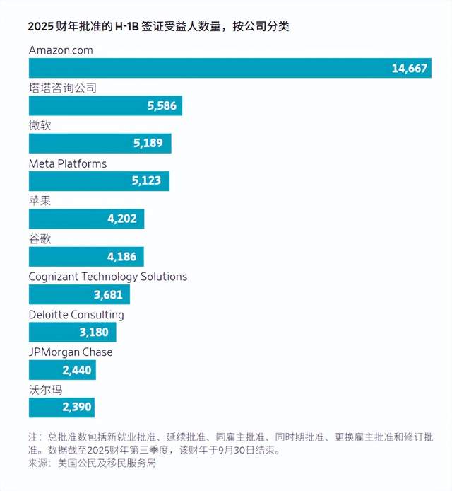 这些H1B签证的绝大多数被亚马逊、微软、谷歌、苹果、Meta等科技巨头使用,以满足计算机程序员、数据分析师和工程师的供应。