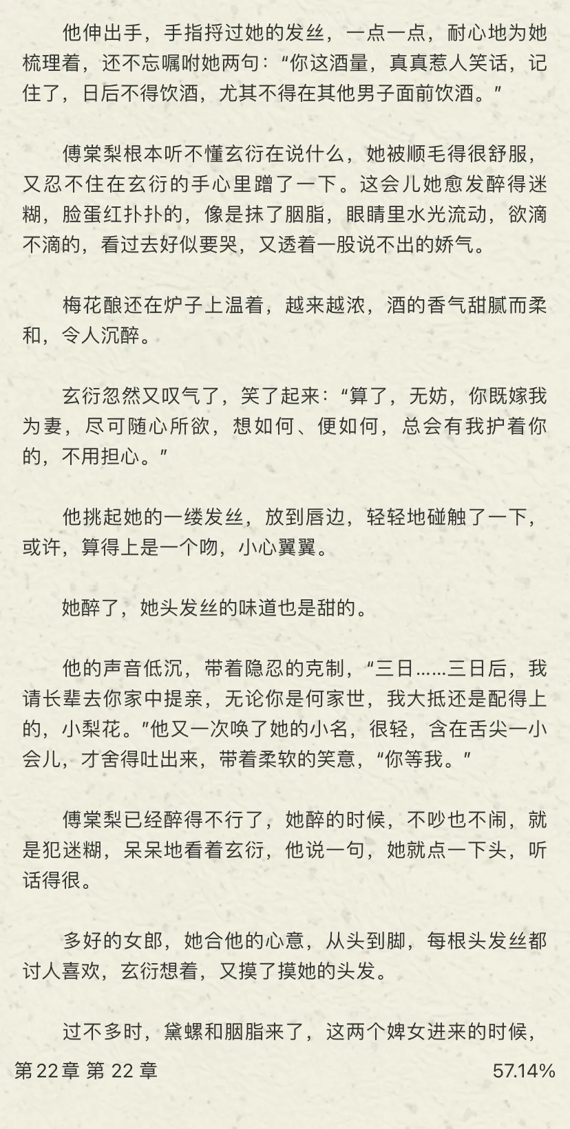 全文没什么大问题,都挺甜的,但是到了文章最后女主的失忆梗我本人觉得非常非常没有必要,通过这个设定来推动剧情发展不是我喜欢的,所以这一段我跳过了,直接看完结局,这本就结束