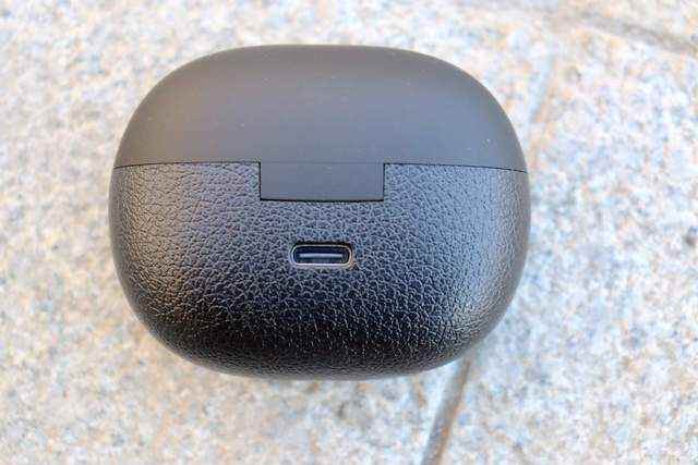 产品外包装采用简约风,和以往他家品牌产品一样,没有在外包装上过多的去修饰,打开外包装,耳机舱开盖处上半部分为普通黑色光滑塑料材质印有白色的南卡logo,下半部分纹理和荔枝皮一样的皮革材质。耳机舱大小适中,一只手就可以握住。
