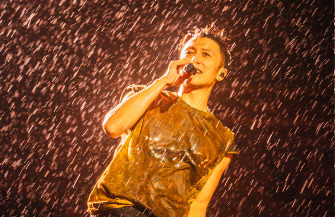看到他在暴雨中唱歌的照片,不得不佩服他的体力和身体素质。