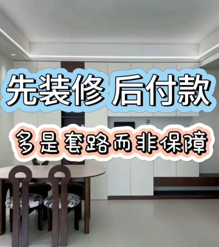 3. 明明很多人踩坑吐槽,你为啥还愿意信? 其实靠谱点的“先装后付”,就是微调付款时间和比例的“节点付款”;不靠谱的直接拿概念当诱饵,后期增项不断,风险比传统模式还大。深耕行业这些年,我敢说没有公司会真“先装后付”:一来多项目垫资扛不住,二来装修是手工活,工期质量难控,也怕业主拖付拒付。
