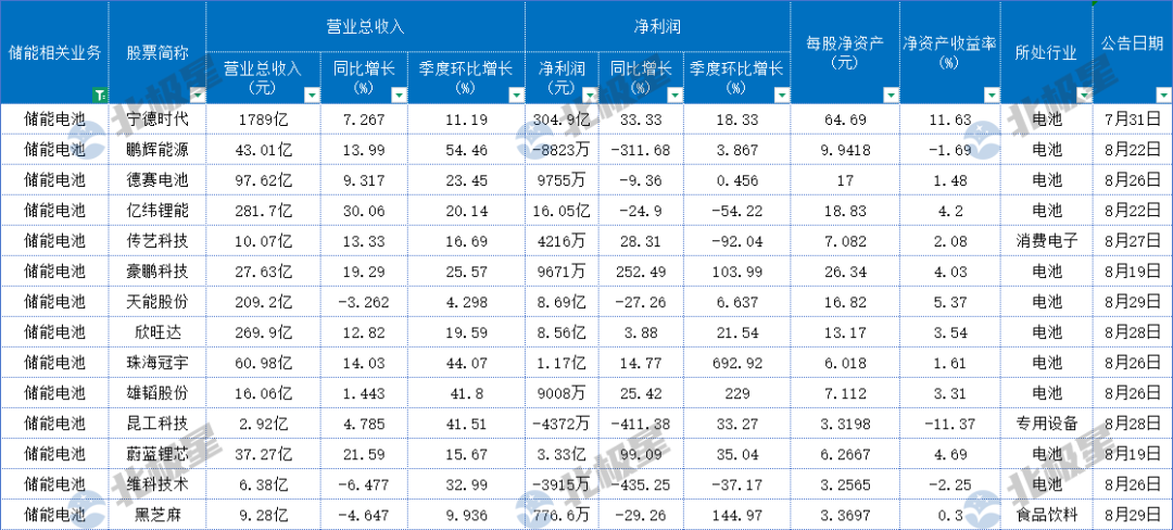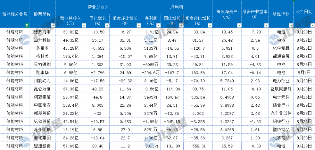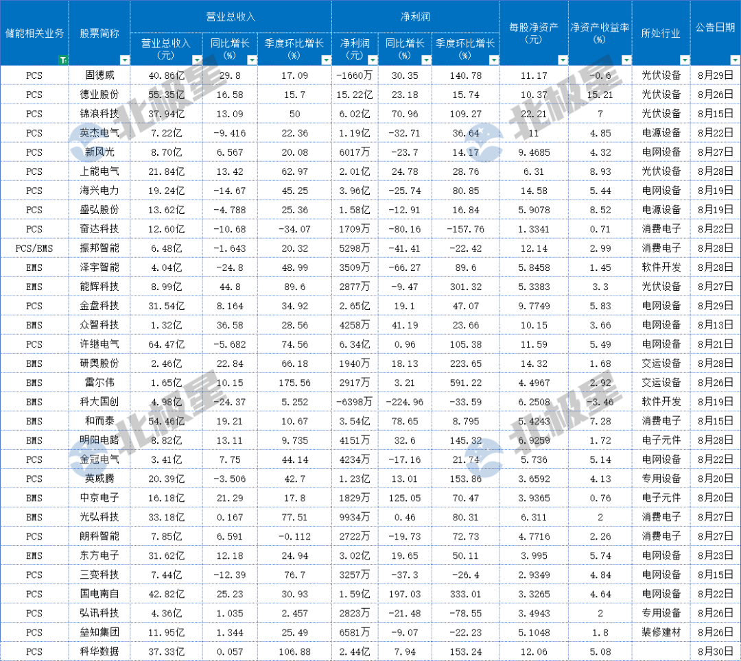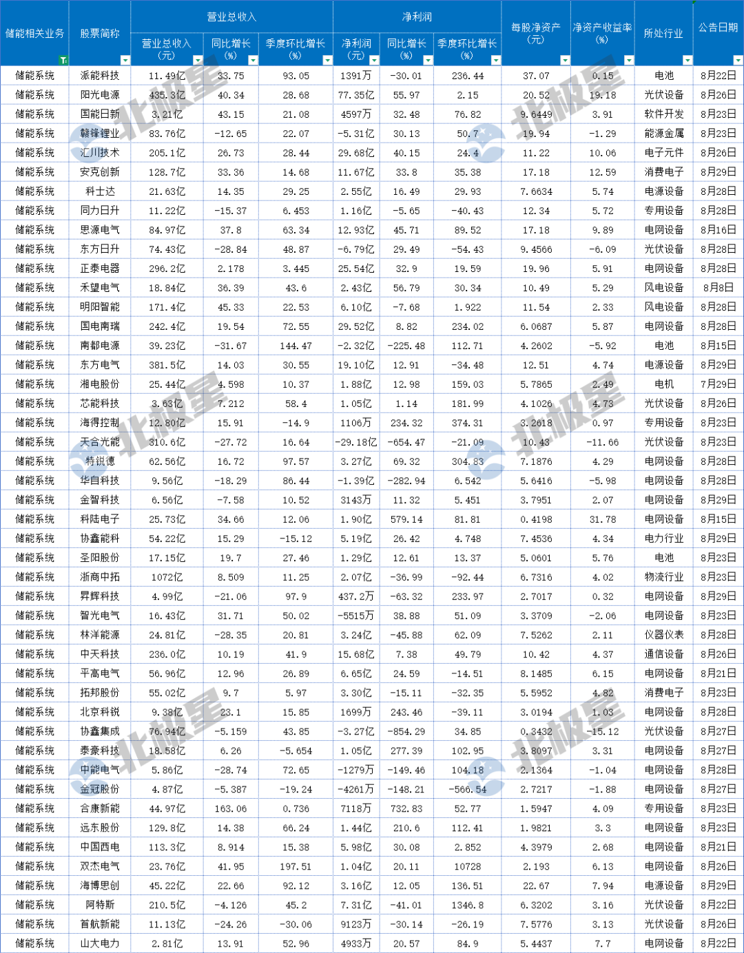 储能电站开发方向,中国能建、海螺水泥、南网储能、新天绿能、晶科科技、深圳能源、申能等都取得了不错的营收,但净利表现承压。