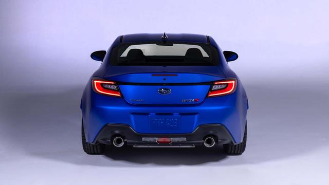 而在车尾部分招牌的粗壮C字形尾灯中央由黑色装饰条相连,尾箱盖末端有着大尺寸的翘起小鸭尾。右下角则同样镶嵌有BRZtS车标,红色的大尺寸tS字母显得非常的醒目,而后保险杠部分双边双出排气采用了巨大的铝合金造型包裹,配合小巧的扩散器等细节,让运动的设计画下圆满的句号。在内饰部分,新车的变化则更明显一些,在保持整体设计不变的情况下,加入了醒目的亮蓝色缝线和座椅装饰条等元素,有效的提亮了整个内饰的观感。