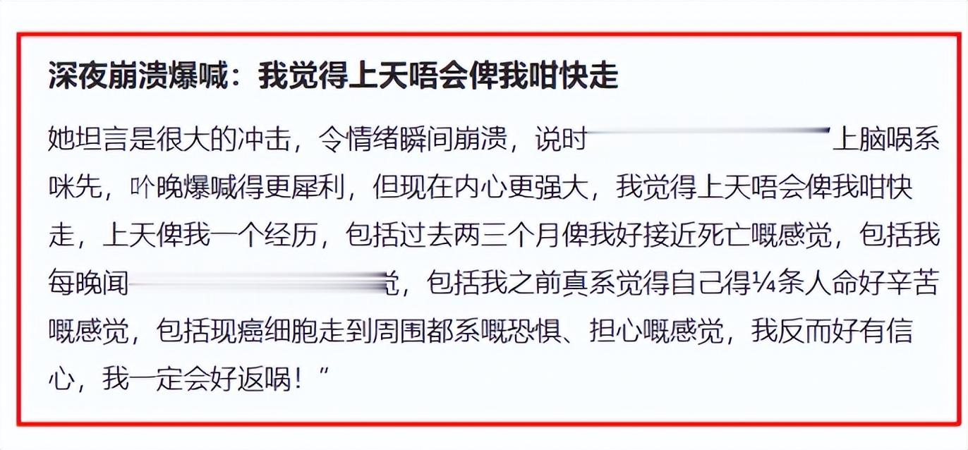 她曾经是明星,是港姐,是万众瞩目的人,可在癌症面前,她和普通人一样脆弱、一样无力。