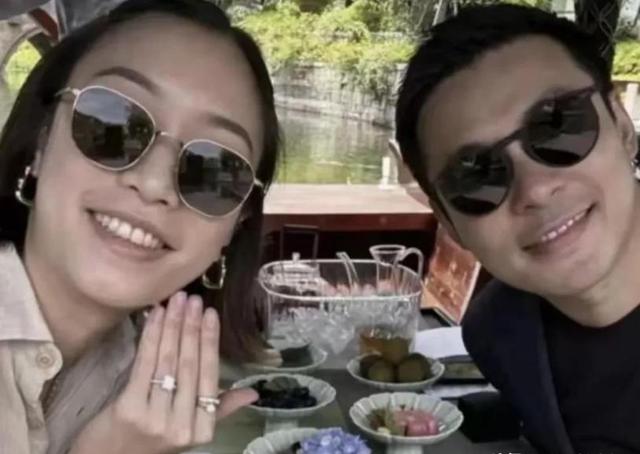 当时还发在了社交平台,可以看出小霍先生还是很浪漫的,在湖中的小船上为女友戴上了戒指,