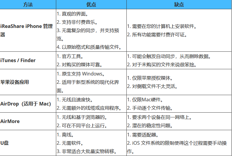 结论将音乐从 iPad 传输到电脑的方法有很多种,每种方法都适合不同的需求。如果您想要一个简单灵活的解决方案,iReaShare iPhone Manager通常是最佳选择。它支持选择性传输和批量传输。对于更喜欢官方方法的用户,iTunes、Finder 或 Apple Devices 应用也提供了可靠的选项——尽管它们也存在一些限制。