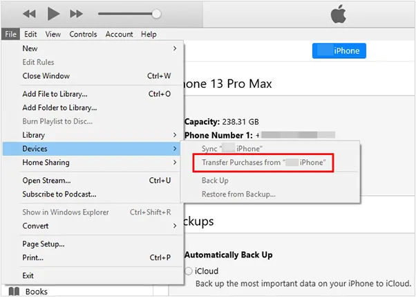 选择“文件”>“设备”>“从[设备名称]传输购买项目”。这将把从 iTunes Store 购买的音乐传输到您的电脑。
