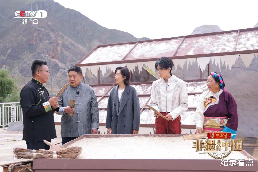“架木为田、汲卤晒盐”造就了澜沧江两岸古盐田的壮丽奇观,当地百姓利用峡谷地形,以粗大原木搭盐田骨架,铺木板再覆沙土,让卤水可蒸发又能渗透,借高原烈日与峡谷劲风制取食盐。主持人、嘉宾在复刻的盐田景观前,与传承人互动体验“刮花盐”工序,聆听专家讲解“架木为田”的工艺原理,感受先民因地制宜的生存智慧。