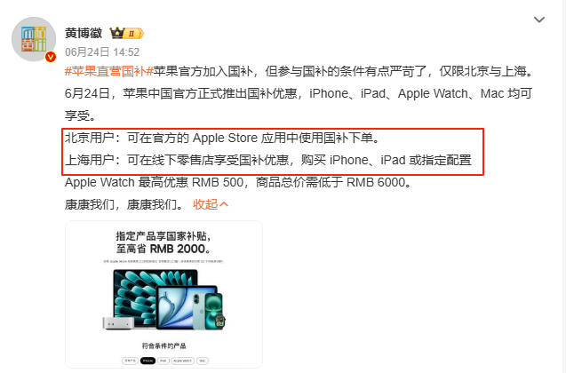 不过比较可惜的是,目前苹果直营国补仅支持北京及上海两地参加,其他地区暂时未开放。不过有一说一,其实iPhone16即使加入了国补,在同级产品中也不算是有啥吸引力了。