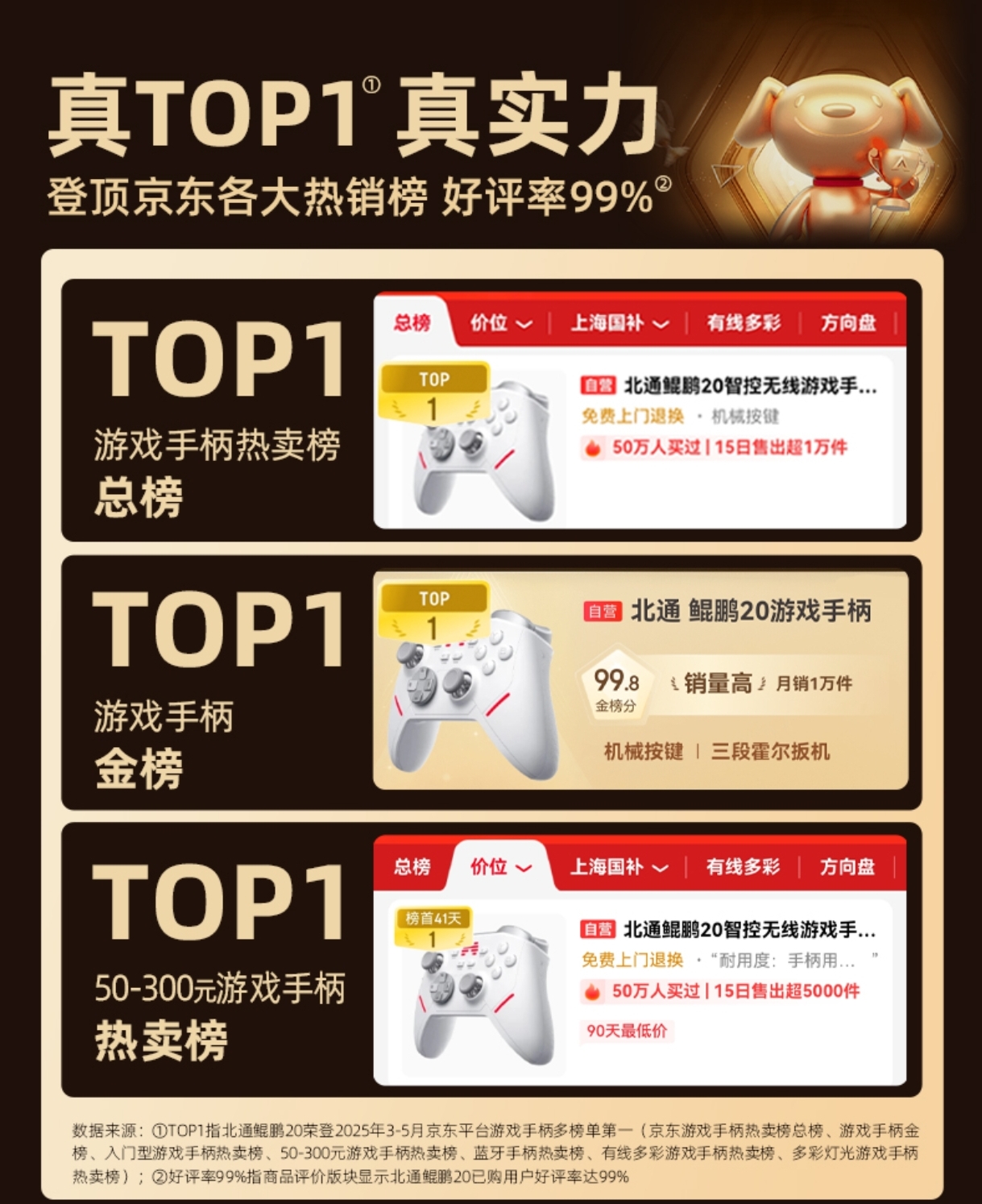 要知道,自从去年北通鲲鹏20发布以来,鲲鹏系列好评如潮,其在京东有99%好评率,成为了40万用户认可之选。这也说明北通28年专注手柄领域,2000万用户共同支撑起来口碑,让北通鲲鹏系列走进千家万户。而且今年的北通鲲鹏20 绝尘白口碑肯定也不错,应该会实现全面越级。