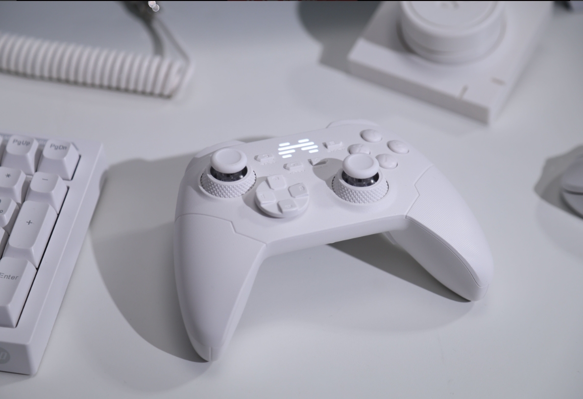 北通鲲鹏20 绝尘白还支持阻尼可调TMR摇杆+专利0磨损结构、黄金机械微动按键设计等,把原来四五百元旗舰价位配置下放200元价位。