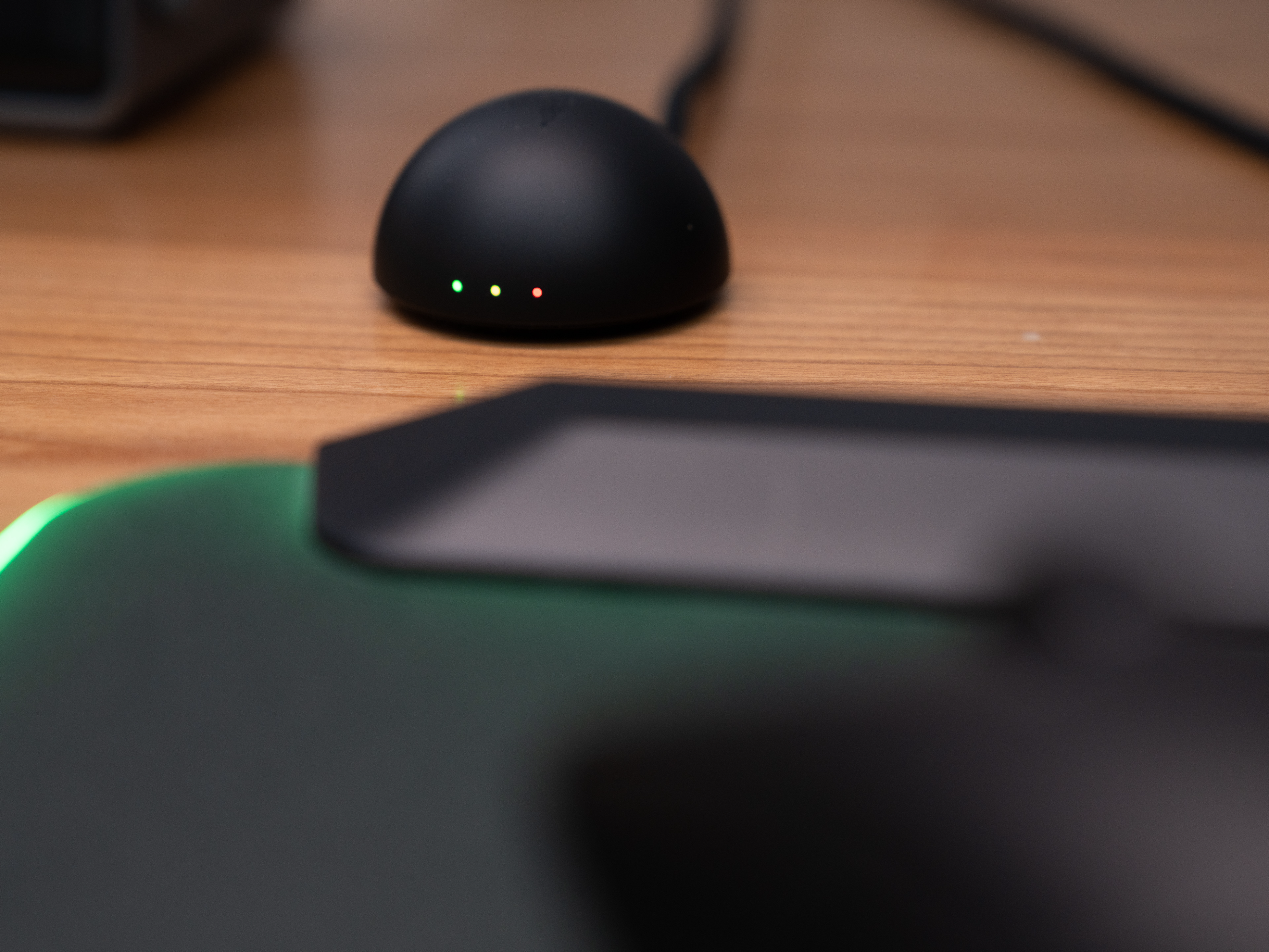 另外,无线接收器前端设置了3颗可变颜色的LED指示灯,通过雷云可以设置对应的功能,如DPI、电量状态、轮询率等等,让性能参数、功能变化更直观。