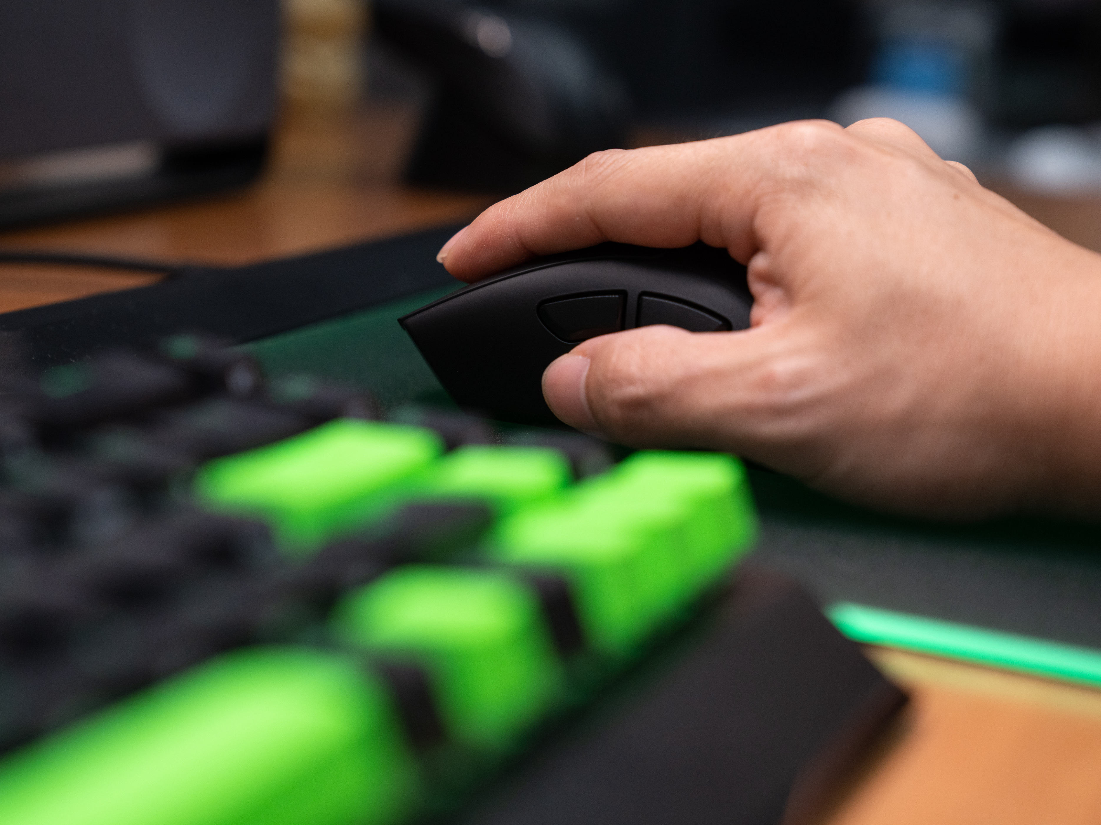 它采用了第四代光学鼠标微动,我的感受就是,在保证利落清脆的击键反馈的基础上,击键触发力度更轻了,这样的变化更能满足长时间的激烈操控的需求了,尤其是在高频点击操作时,完全没有延迟和粘滞感。