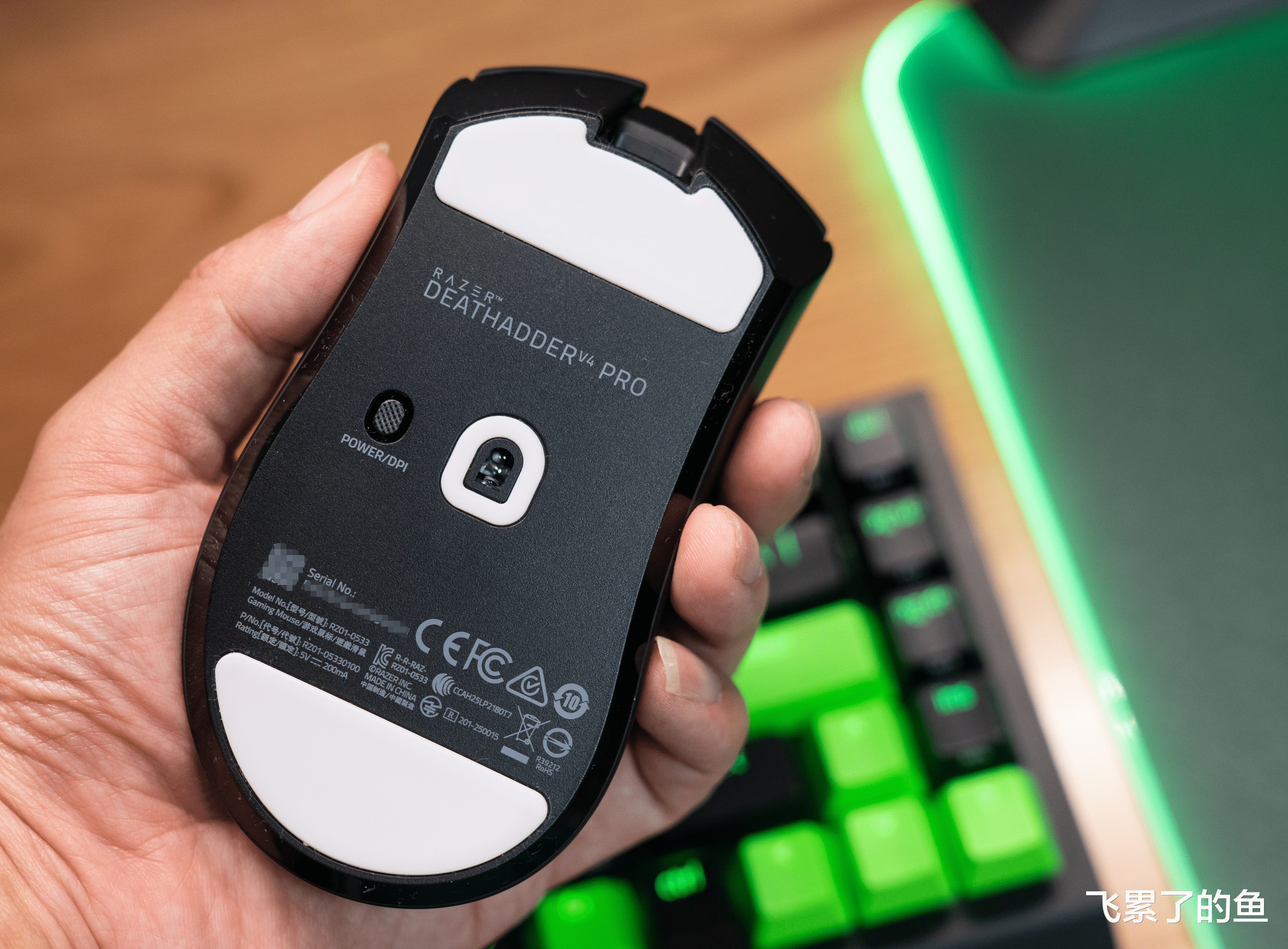 为了极致减重,炼狱蝰蛇V4 专业版尾部的 logo 依旧没有灯效,采用印花工艺。目前看来,炫酷灯效和极致减重不可兼得,此次此刻,那个不发光的了雷蛇logo就是最硬核的“身份名片”。