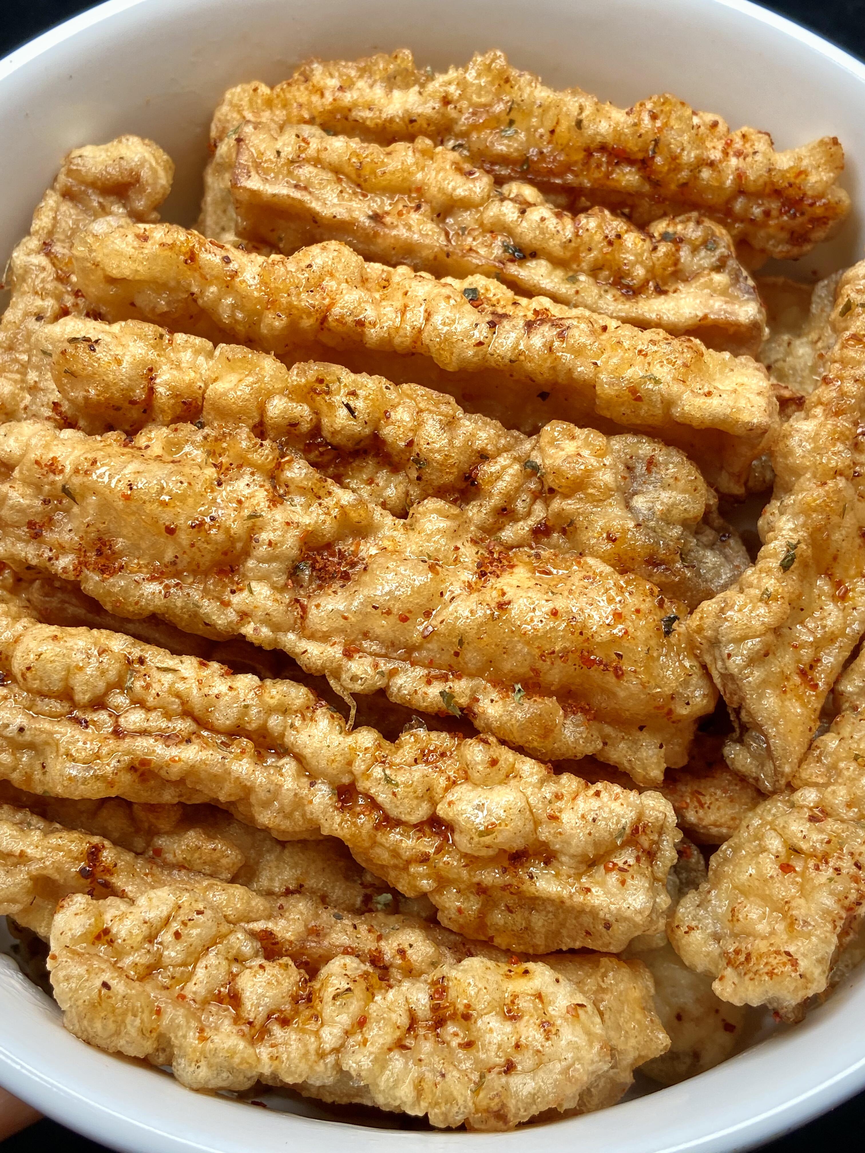 • 炸至杏鲍菇表面金黄酥脆时,就可以捞出沥油了。如果喜欢更加酥脆的口感,可以复炸一次。