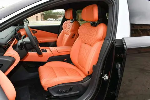 其座椅采用Nappa真皮材质,具备出色的支撑性与包裹性,打孔工艺与黑钻切割绗缝、高定刺绣相结合,将艺术美感与舒适体验W美融合 。前排座椅可在87° - 159°之间自由调节,后排座椅也支持117° - 124°电动调角,配合前后排均配备的通风、加热、按摩功能,为每一位乘客提供头等舱级别的尊享体验 。后排1700cm²超大扶手不仅宽大舒适,更可化身 “小吧台”,放置饮品或小型物品。副驾靠背小桌板的贴心设计,无论是办公还是用餐,都能满足乘客的需求 。此外,车内还配备了哈曼卡顿23扬声器7.1.4多声道音响系统,拥有1600W功率,能够还原出犹如音乐厅级别的震撼声场 。双层设计的多功能中央扶手,上层收纳方便随手物品,下层5.7L冷热一体车载冰箱可随时为乘客提供温度适宜的饮品,细节之处尽显人性化关怀 。