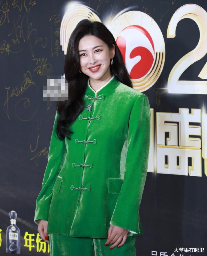 但朱珠却用她那身复古的绿色唐装打破了这一常规。