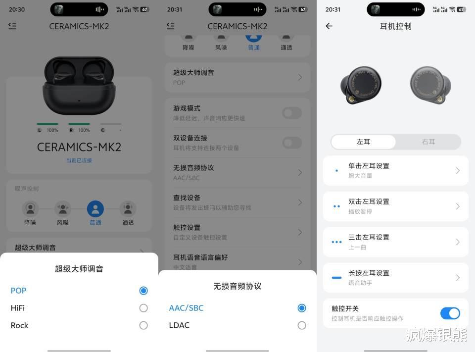 另外其还内置了三种大师级调音风格,POP偏流行,HIFI适合听人声、乐器,Rock个人觉得摇滚、电音什么的都还不错;LDAC无损音频要在APP中开启才行,这点需注意;在操控上它也支持自主调节,满足不同用户体验需求。
