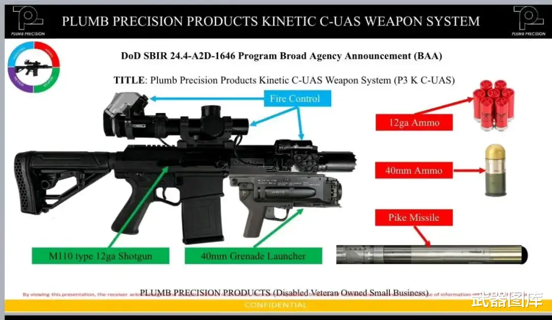 在美军“烽火问鼎计划”(MD三等人下一代单兵武器系统)的竞标中,铅垂精密产品有限公司(Plumb Precision Products)的“P3 M110精密榴弹发射器”(P3 M110 PGS)曾以低成本改装方案与空爆弹药技术引发关注。尽管其第一阶段竞标最终落败,但这家公司并未止步,而是迅速将技术积累转化为针对无人机威胁的全新武器系统——P3 M110(A1)反无人机步枪(PE M110(A1) C-UAS)。这一转型不仅体现了轻武器领域“竞标失败-技术复用-市场突围”的典型路径,更折射出现代战场对“低成本、多任务、智能化”武器的迫切需求。