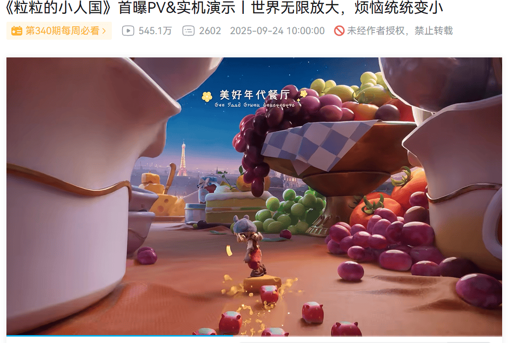 短短几日时间,其播放量就超过了500万,官方还同步放出了一段接近8分钟的实机演示,进一步展示了家园建造、个性鲜明的NPC“粒粒”、自由互动与换装、世界探索等核心玩法,在玩家间引起了激烈的讨论。