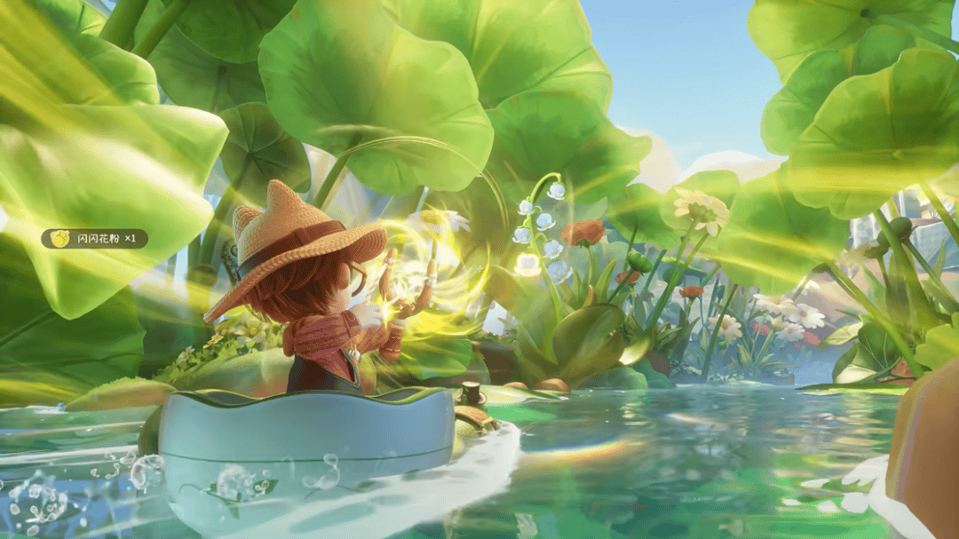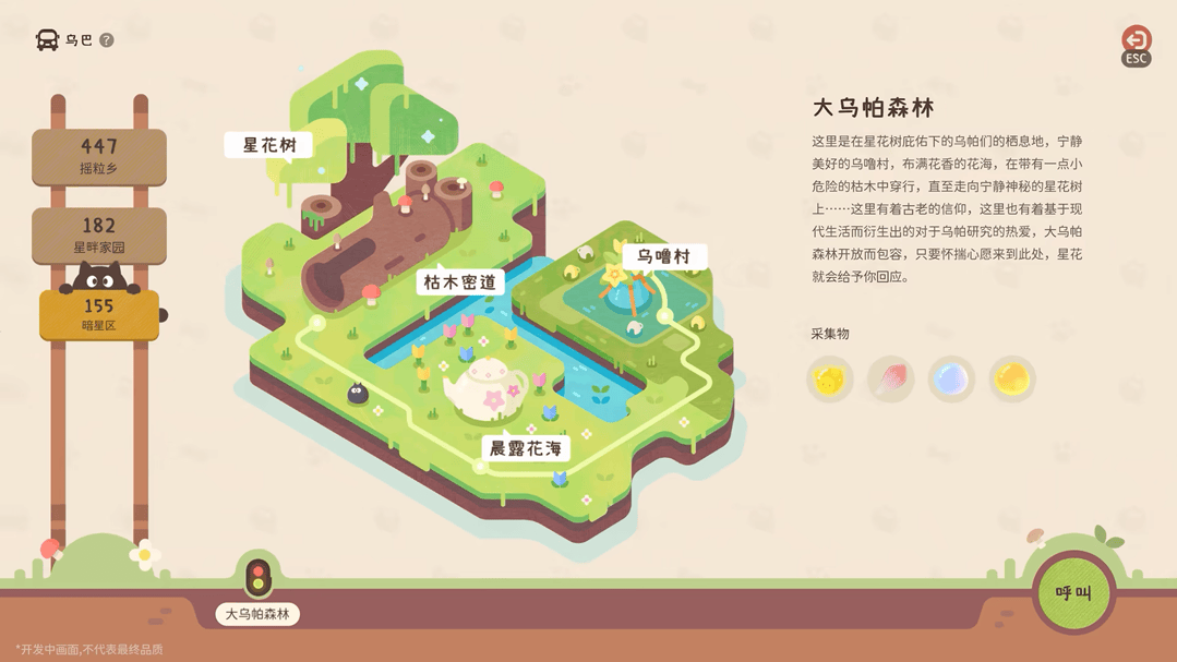 当玩家精心打造好自己的小天地后,还可以乘坐“乌帕巴士”去探索更广阔的世界。由于视角的微观化,探险的过程也充满了“物外之趣”。比如这次展示的森林区域就格外引人注目,你可以用吸香瓶收集花粉,用天气瓶捕捉阳光,摇晃花朵收集花蜜,甚至可以用弹弓弹奏不同音色的“白风铃”,做一个掌控生活的收藏家。