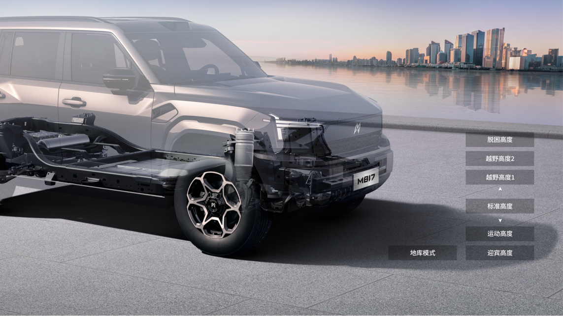 在动力系统上,猛士M817采用了行业首个2挡纵置11模PHEV架构,综合功率高达505kW,综合扭矩达到848N・m,动力性能堪比6.0T燃油发动机。11种动力模式智能适配不同场景,无论是城市通勤还是长途穿越,都能轻松应对。