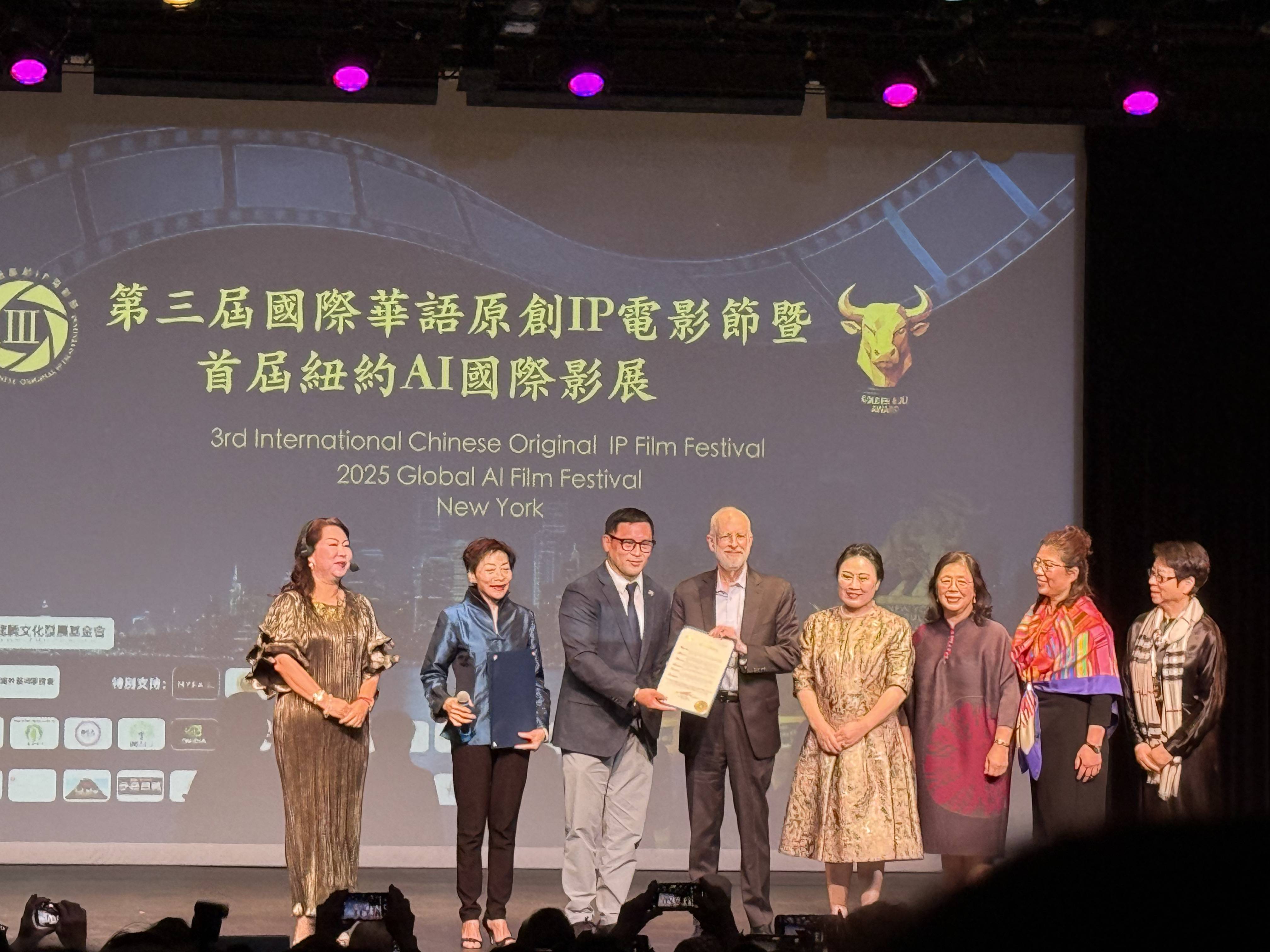 此次活动由第三届国际华语原创IP电影节暨2025纽约AI国际影展组委会主办,联合纽约电影学院、美国龙腾文化发展基金会及罗丹国际艺术家基金会等机构承办。从10月17日至18日的纽约电影学院论坛,到昨晚的百老汇剧院盛典,整个电影节呈现了文字转化影像的奇迹、科技点亮艺术的魅力,以及年轻创作者在光影中寻觅声音的热血。组委会透露,获奖作品将进一步推向全球平台,助力华语IP在AI时代扬帆远航。