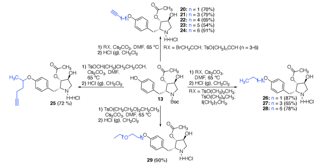 Scheme 1. p-位取代 Anisomycin 类似物 (20-29) 的合成