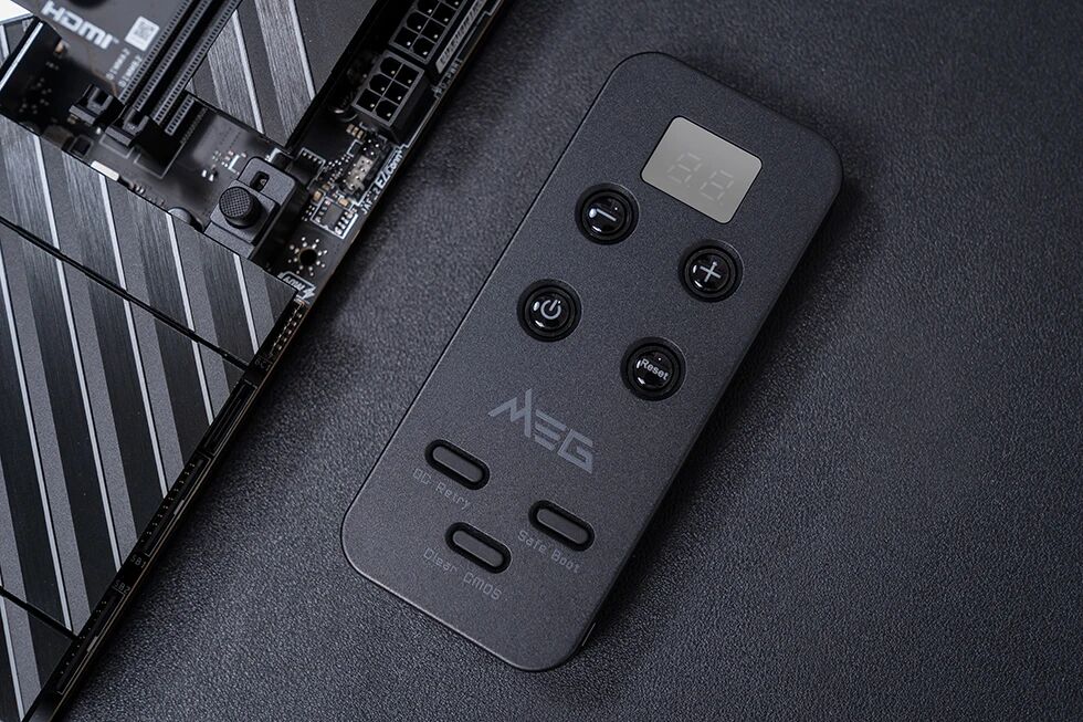 随机附赠的Tuning Controller 超频遥控器 更是锦上添花,传统超频需要反复重启、进入 BIOS、调节参数,而通过这款遥控器,玩家可在系统内直接完成超频调节,一步到位,大幅降低了极限超频的调试成本。